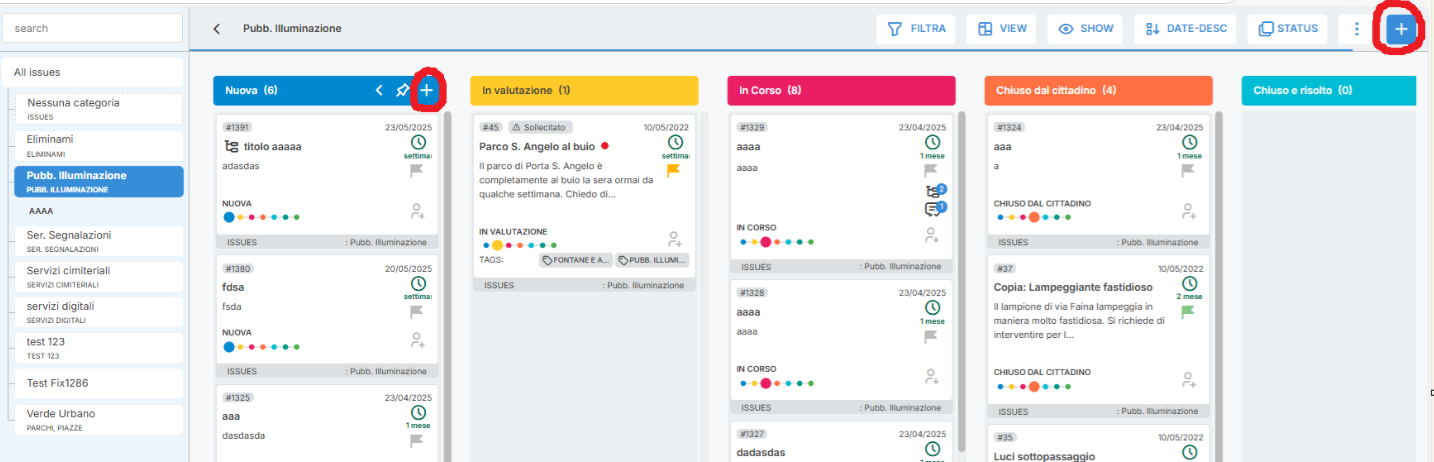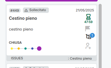 E' stata introdotta la possibilità per l'utente di sollecitare una segnalazione. Le segnalazioni sollecitate vengono contrassegnate con una dicitura specifica sulla card