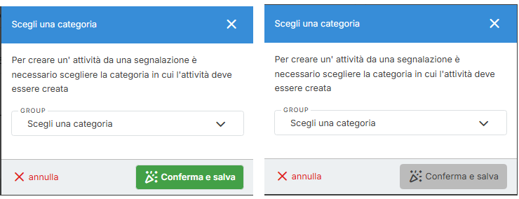 Quando parti da una segnalazione (issue) e apri la modale “Nuovo task”, se non hai scelto esplicitamente una sottocategoria diversa da “Nessuna categoria”, non ti è consentito salvare il task.
