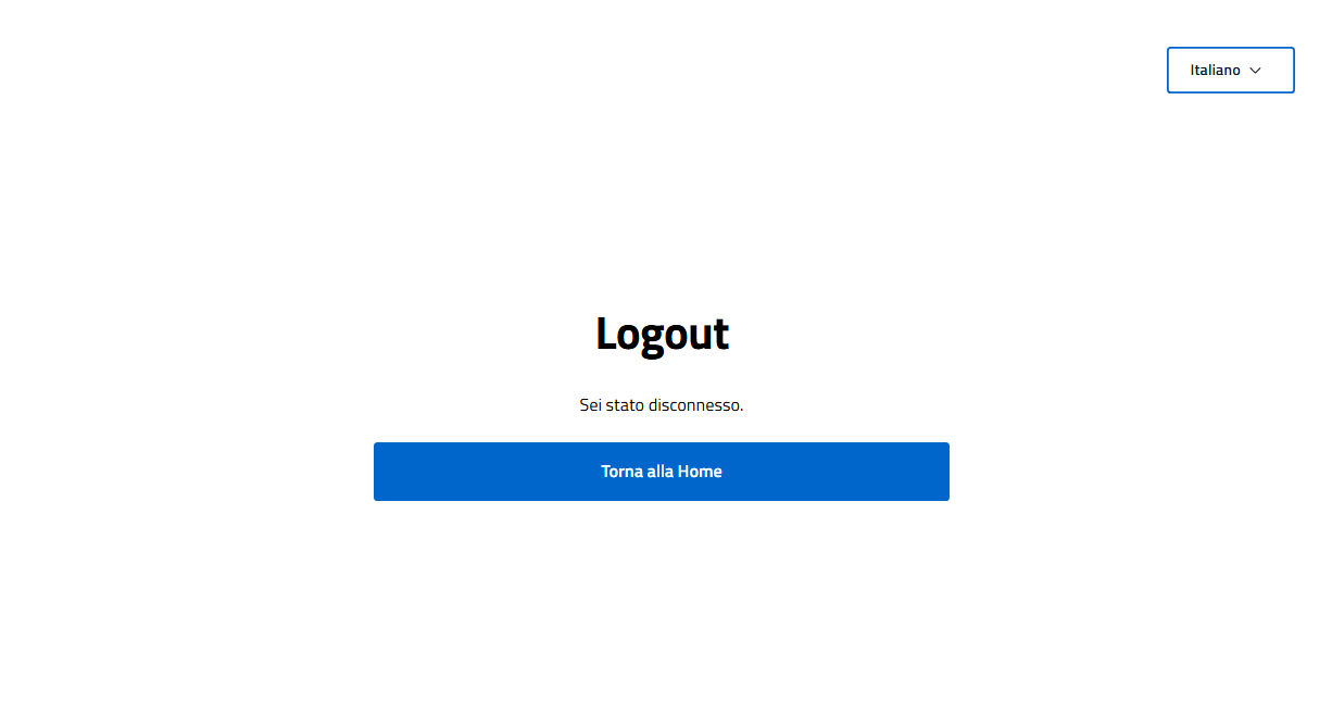 Quando un utente effettua il logout nel frontend AGID, viene automaticamente reindirizzato a una pagina dedicata che conferma l’avvenuta uscita.