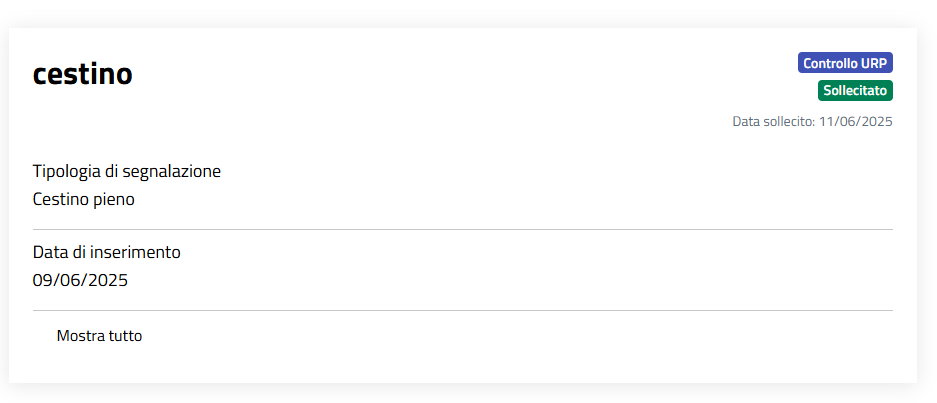 Una segnalazione sollecitata è contrassegnata da un piccolo tag e da una data che riporta la data del sollecito.