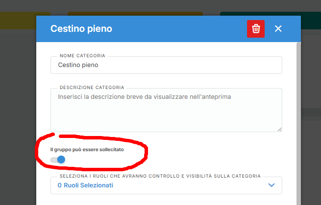 È possibile impostare le categorie per le quali il sollecito è ammesso. Per farlo basta abilitare un'opzione presente nella modale di modifica/creazione di una categoria: