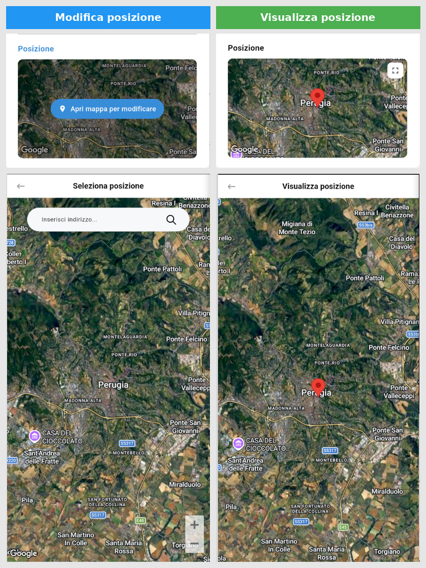 3) Modificata la visualizzazione e la modifica del marker nella mappa. Aggiunto widget per la visualizzazione e la modifica in modalità pieno schermo.
