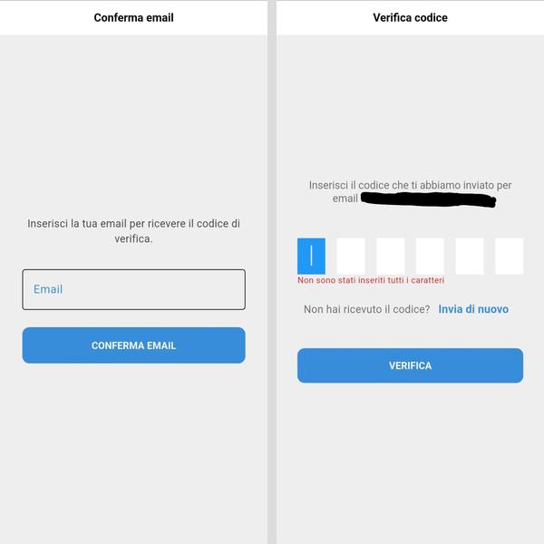 Quando si accede con un provider di login che non fornisce una eMail validata (ad es. CIE), il sistema forza l'utente verso una schermata con inserimento email e validazione tramite pin dalla mail. Non sono possibili interazioni con l'app fino a che l'eMail non viene inserita e validata correttamente.