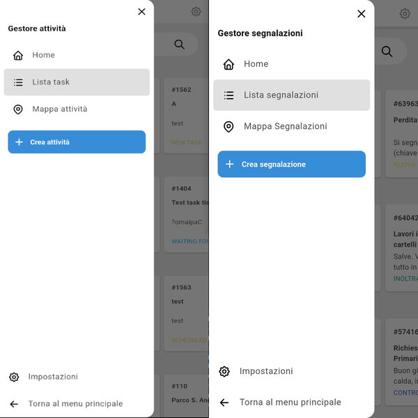 Sostituito il menù di azioni in basso con menù di navigazione laterale come per tasks e issue.