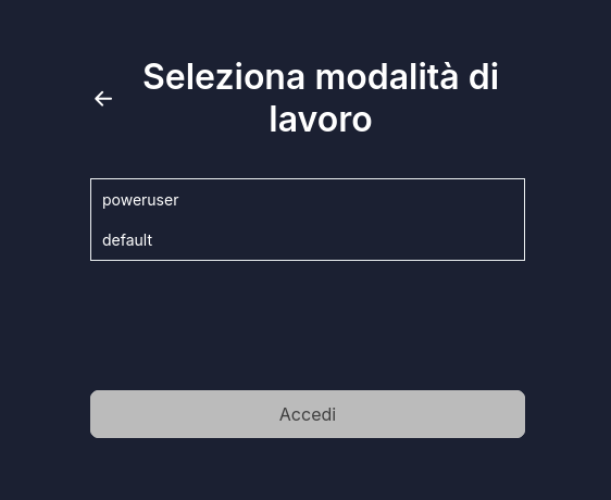 Nel caso si scelga di entrare come "poweruser" (Operatore), verranno abilitati tutti i ruoli associati all'utente con ESCLUSIONE dei ruoli di default.